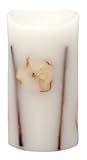 ナチュラルなキャンドルで、とても素敵でした!プレゼントにしたのですが、とても喜んでもらえました。電池で点灯しますが、少し離れて見ますと、実際に火が灯っているように見えます。シナモンアップルの香りもナチュラルで、私もいつかは購入したいです。